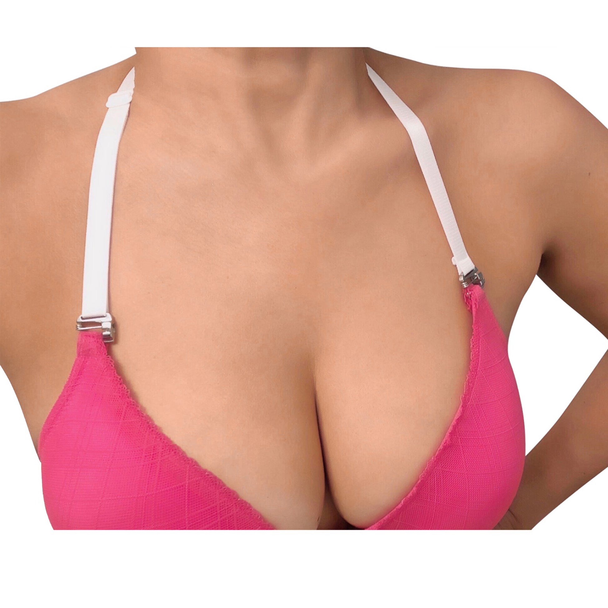Get 1 Halter Neck Bra Straps (clear, black, white or nude) by PIN STRAPSTM that are adjustable up to 20 inches long and detachable.