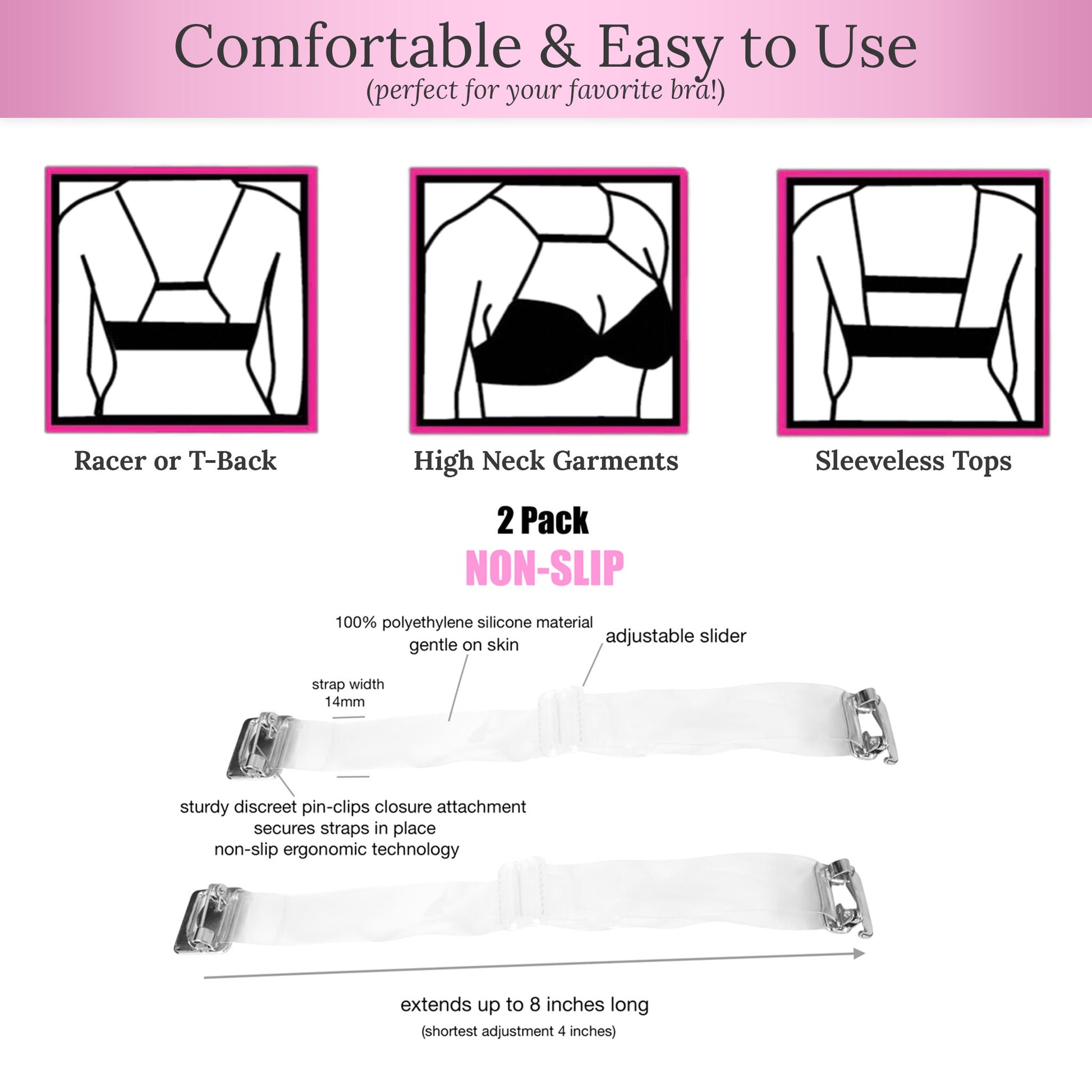 Get 2 (Non-Slip) Bra Strap Holders by Pin StrapsTM that truly won't slip, move, nor slide down, guaranteed!
