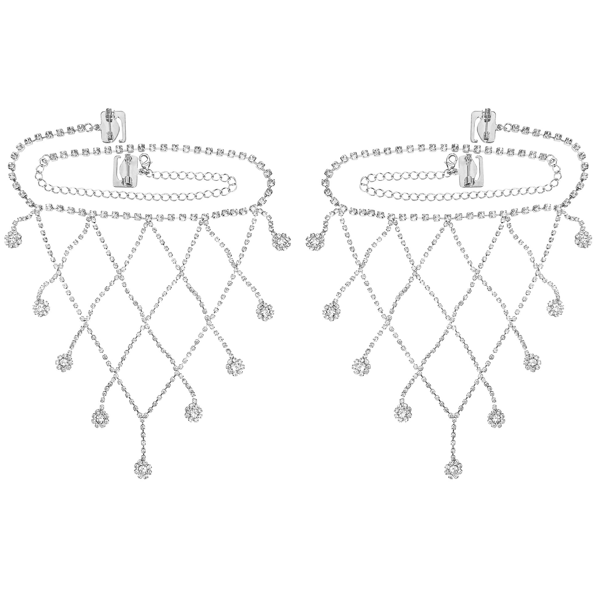 Get 2 Cascades Sleeves (Silver) Rhinestone Dress Straps by Pin StrapsTM that are adjustable, detachable and adds a stunning shoulder sleeve look to your outfit while providing ultimate security to your garments.